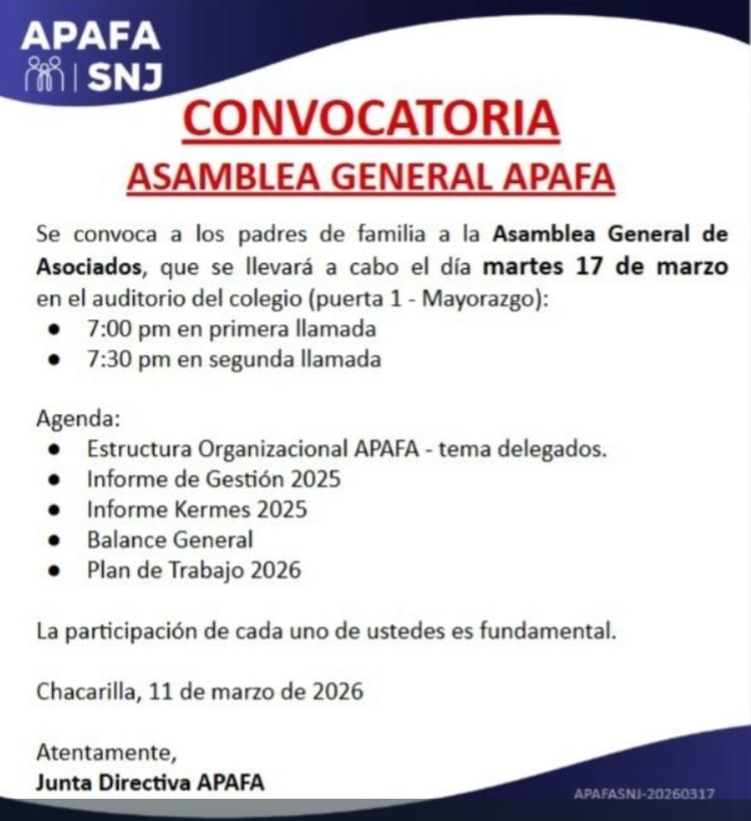 CONVOCATORIA ASAMBLEA GENERAL APAFA